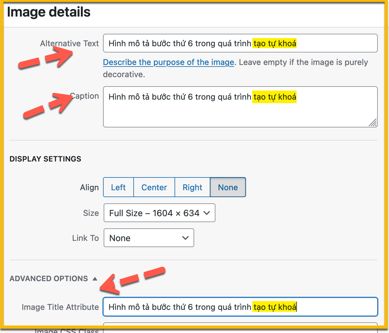 - Vị trí thứ 5: Chèn từ khoá trong hình ảnh