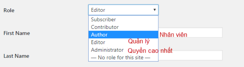Phân quyền nhân viên. Quyền admin là cao nhất, nếu là nhân viên up bài bạn chỉ chọn là