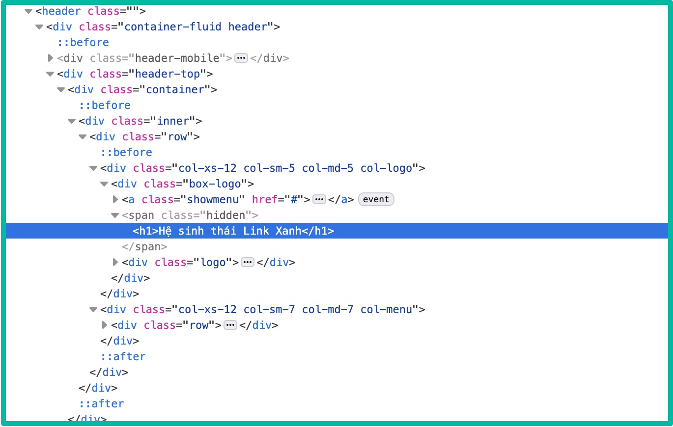- [H1] : là tên tiêu đề bài viết ở trên đầu website, chỉ có 1 tiêu đề nên chỉ có 1 H1 mà thôi
